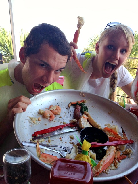 My daughter and her boyfriend chowing down eating crab and other seafood.