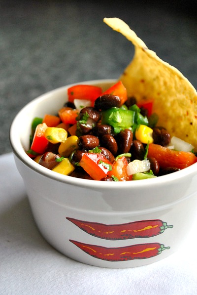 Salsa is a staple at our house we love it on everything, sometimes I think my daughter lives off of chips and salsa. You would think that kids wouldn’t like this salsa but it’s just the opposite, my kids love it. The funny thing is all the ingredients except the beans and corn they wouldn’t touch on their own. I usually make it when we eat Mexican dishes because it goes so well as either a salsa or salad. This salsa is also great on burritos, tacos or grilled meats. The secret to this great salsa is the homemade flavored vinegar, mixed with the oil and cilantro. If you don’t want to make the vinegar or have time just use white wine vinegar even rice wine vinegar would work too. One of the important ingredients that I wouldn’t leave out would be the fresh garlic, it just doesn’t taste the same without it. I hope your enjoy this recipe as much as our family has.