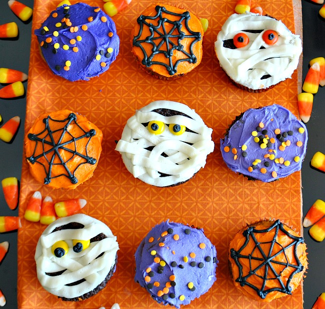 These Halloween cupcakes are so much fun, love the colors and designs but I think it’s the mummy that has really caught my eye or should I say eyes?! Congratulations on doing such a great job -I’ll bet these cupcakes were a huge hit!