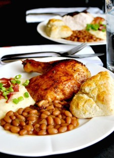 Baking chicken is probably the most common way to cook it, with this rub your are sure to have some fantastic and flavorful meat, just make sure your chicken has the skin. If your interested in the recipe for biscuits check out The Brown Eyed Baker, her recipe has been my favorite since I discovered it this year. As for the beans they are Bush’s Baked Beans with no doctoring. The grits are cheesy with bacon and green onions, pretty simple to make; just use quick cooking grits and use half water and half milk for creamier grits. When the consistency of the grits is where you like them add some cheese and taste, then salt and pepper until you feel it’s enough. Sprinkle with crispy bacon and green onions and you have yourself some good southern grits.
