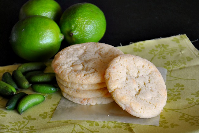 It’s citrus season, and oh how I do enjoy all the lovely citrus fruits. One great thing about the United States is we get such wonderful fruit year round, even in the middle of the country where I am. Citrus adds such a nice flavor to sweet dishes and savory as well, it’s something I really cant get enough of. Limes are wonderful but usually you don’t see cookies made with limes, that is why I decided I needed to try it. I received some special limes called finger limes from Shanely Farms a few months back and I posted a recipe called lime pudding cake {it’s really tasty} where I explain about finger limes. The cookies I made for you today are a little zingy but the sweetness from the white chocolate chips keeps them in balance. Shanely Farms is a wonderful place to get these finger limes and they will ship them right to you since finger limes are so new to the culinary world. I highly recommend you give these new limes a try, but even if you can’t find them just use extra zest from the regular limes and you will enjoy these bright tasting cookies.
