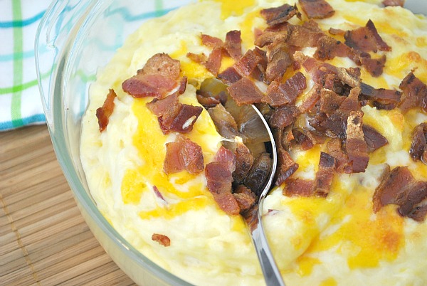 Do you like mashed potatoes? Then your going to love these potatoes loaded with all the yummy stuff that make potatoes so sinful. Red potatoes are my favorite type of potato but you can use the brown baking potato or Yukon gold which ever is your favorite. I leave some of the skin on for a more rustic dish and I don’t mash all the lumps out so you really can’t mess these potatoes up. I used light sour cream and skim milk because that is what I usually have on hand so these aren’t totally sinful 🙂 These potatoes go perfectly with my grilled chicken with balsamic-pom reduction sauce, but what man wouldn’t love these potatoes with a juicy grilled steak. I shared these over at The Mother Huddle today so hop on over there for the recipe and enjoy.