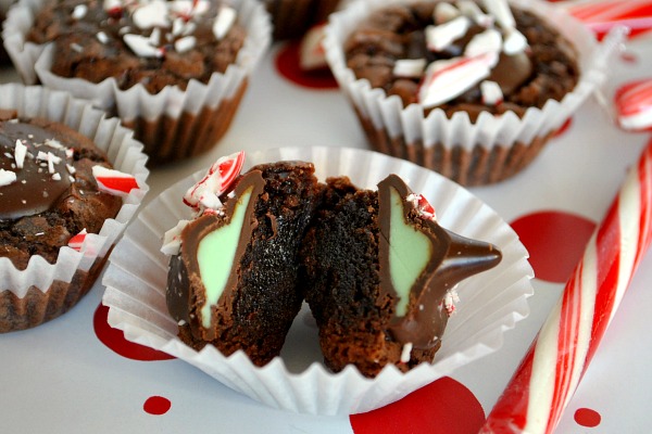 I’m loving these little rich minty bites of brownies that I just happened upon and so will you. Hersey’s Kisses Dark Chocolates filled with Mint Truffle come out during the holidays and I found out that they are seriously addicting. If you buy some mint kisses you better pick up two bags, one for the brownie bites and one for you :). There is a recipe on the back of the bag for these brownies bites but my version is simplified because I didn’t have time to make them from scratch. When I am baking for the holidays I like to have a few things that taste fantastic but are semi-homemade because I’m usually doing ten things at once.