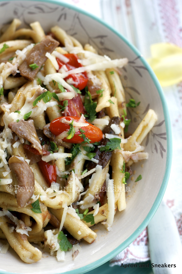 Pasta with Porcini Mushrooms & Datterini Tomatoes with Truffle Oil~Guest Post from Apron and Sneakers