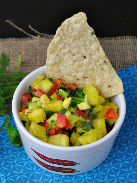 Mmm…Pineapple salsa is so yummy, and yours looks delicious! I am planning grilled mahi mahi for later in the week and this would make a fabulous topping!